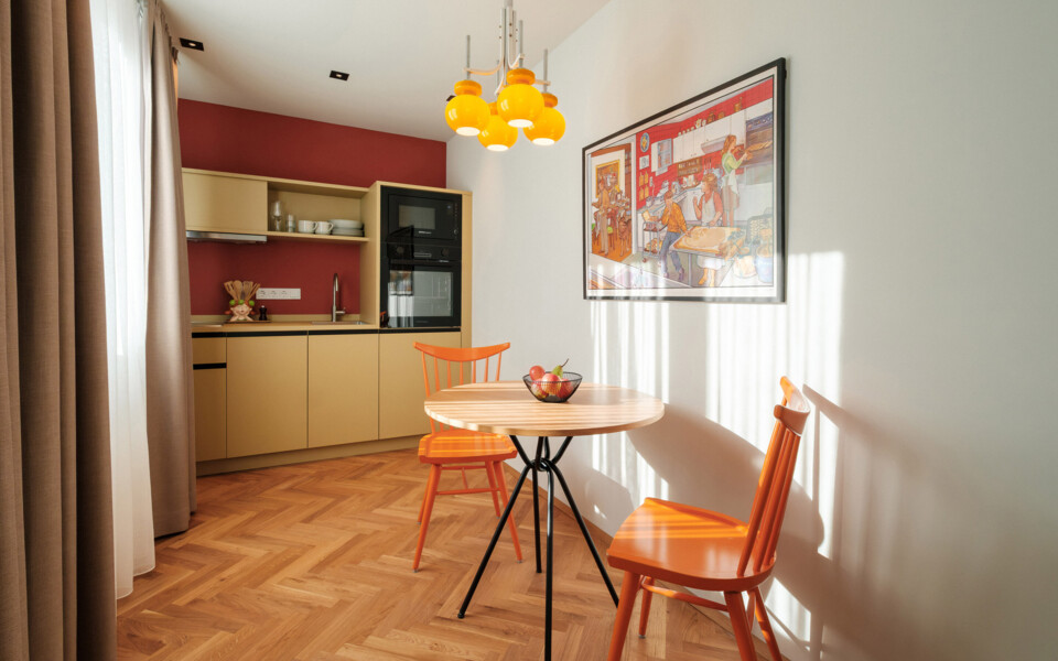 Our Comfort Studios are cosily furnished long-term apartments with a loft-like feel. Measuring 40 square metres, they offer living space in Vienna for 1 to 2 people.