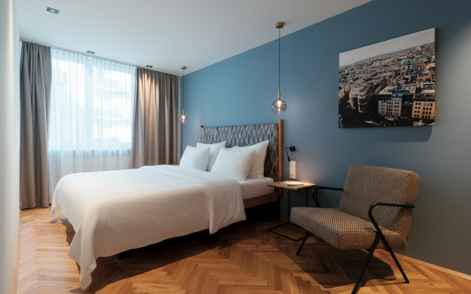 Our spacious, furnished Deluxe Apartment with Balcony is a true space wonder for families or groups seeking a temporary home in Vienna. Covering 89 m², it features four stylishly furnished rooms, two modern bathrooms, and a fully equipped open-plan kitchen and living area.