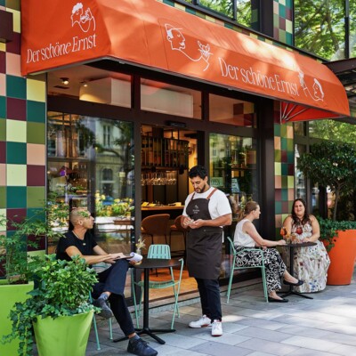 The Henriette Longstay Apartments are located at Praterstraße 44–46, in the quiet rear building of a classic Viennese residential house. In the front building, you’ll find the Henriette Stadthotel Vienna and the Café-Bar Der schöne Ernst. Check-in takes place at the hotel reception on the 1st floor.